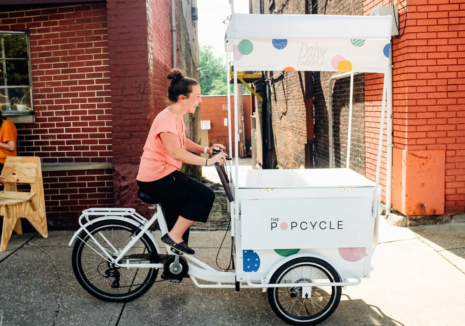 • PopCycle ($125/hour): Our vending bike that can go outdoors OR indoors. Complete with fun little bicycle bell we ring when your guests get their cake pops. This can go outdoors or indoors if there is a double wide door available.